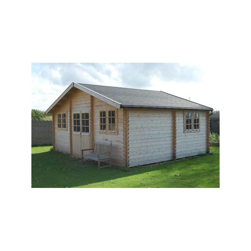 Grand abri de jardin simple et classique avec un toit à deux pans. Idéal pour un grand stockage, ou pour y créer un endroit agréable. Nous utilisons ici le sapin blanc du Nord.