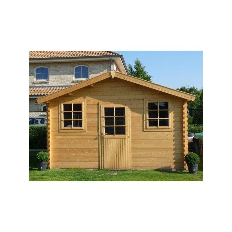 Pavillon de jardin classique avec un toit à deux pans. Idéal pour un grand stockage, ou pour y créer un endroit agréable grâce à sa taille et à la luminosité qu'apportent les fenêtres. Nous utilisons ici le sapin blanc du Nord.